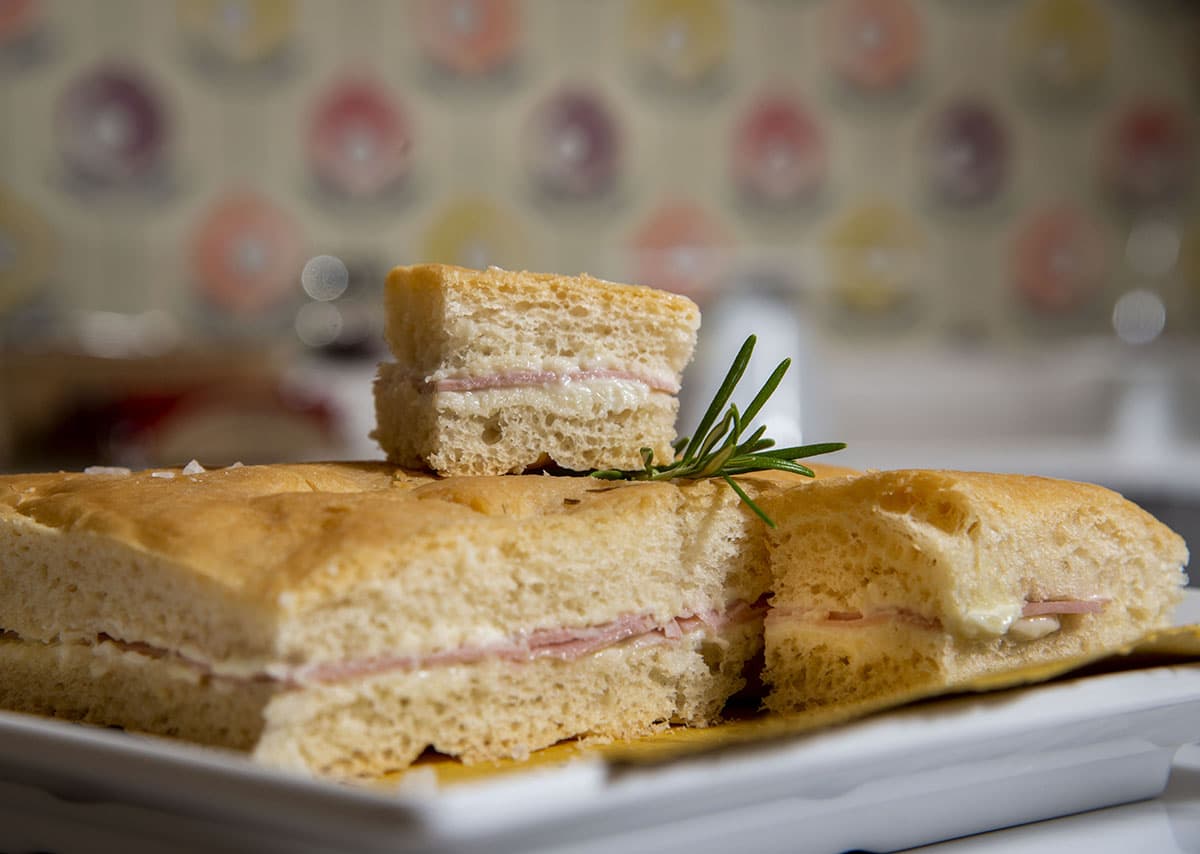 Pane in cassetta, prosciutto cotto e fontina. Maionese su richiesta.