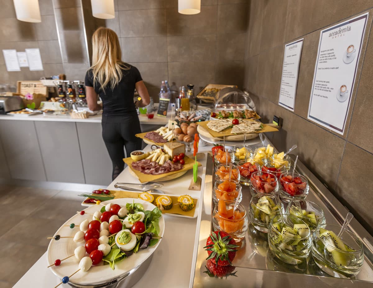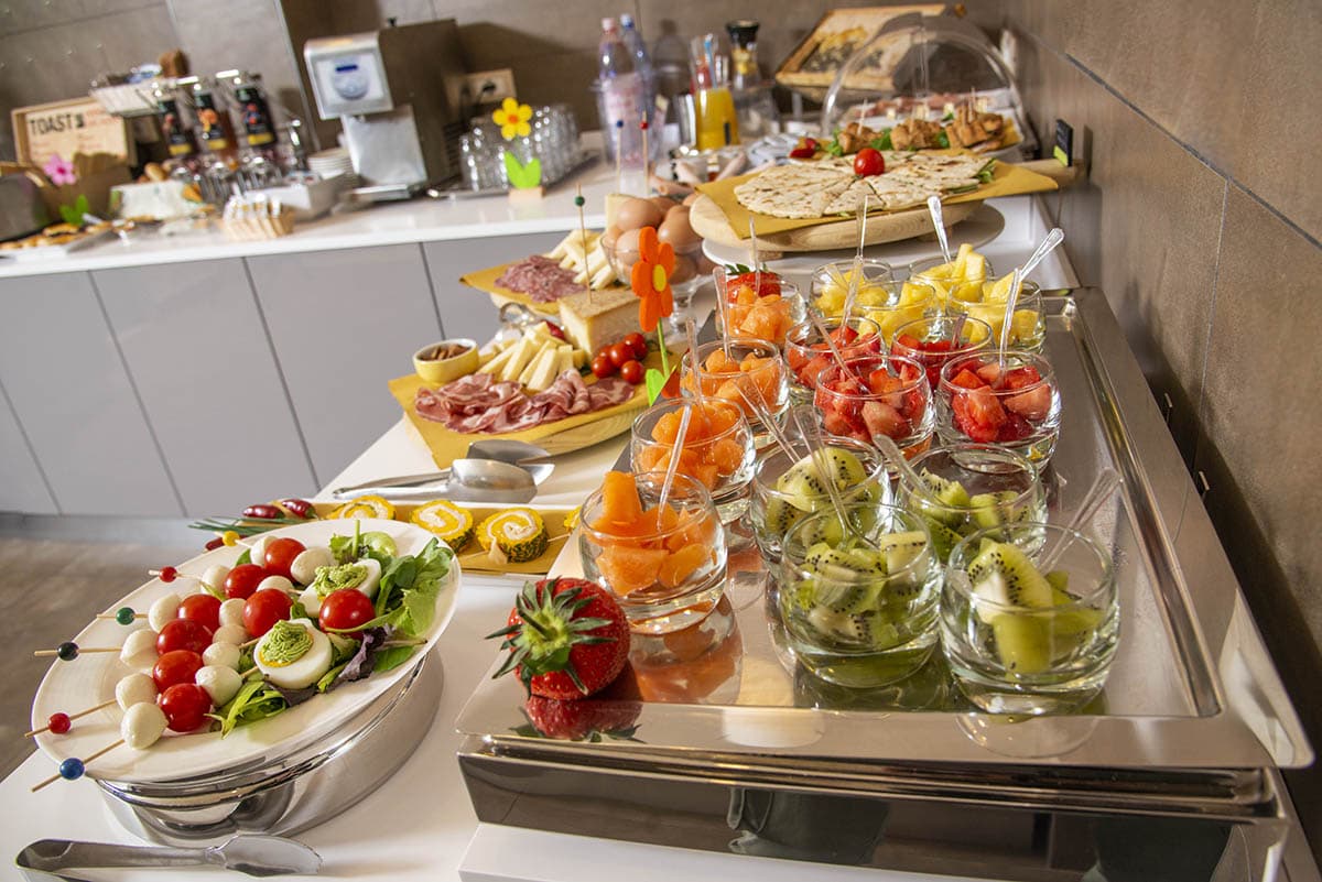 Il tutto avvolto dal profumo di caffè espresso fatto come si deve (chi l’ha detto che quello in hotel deve essere meno buono che al bar?). E se sei vegan, hai intolleranze o allergie, abbiamo un menù goloso fatto per te, con torte appena sfornate, come quella alla vaniglia o al limone, senza glutine e senza lattosio.