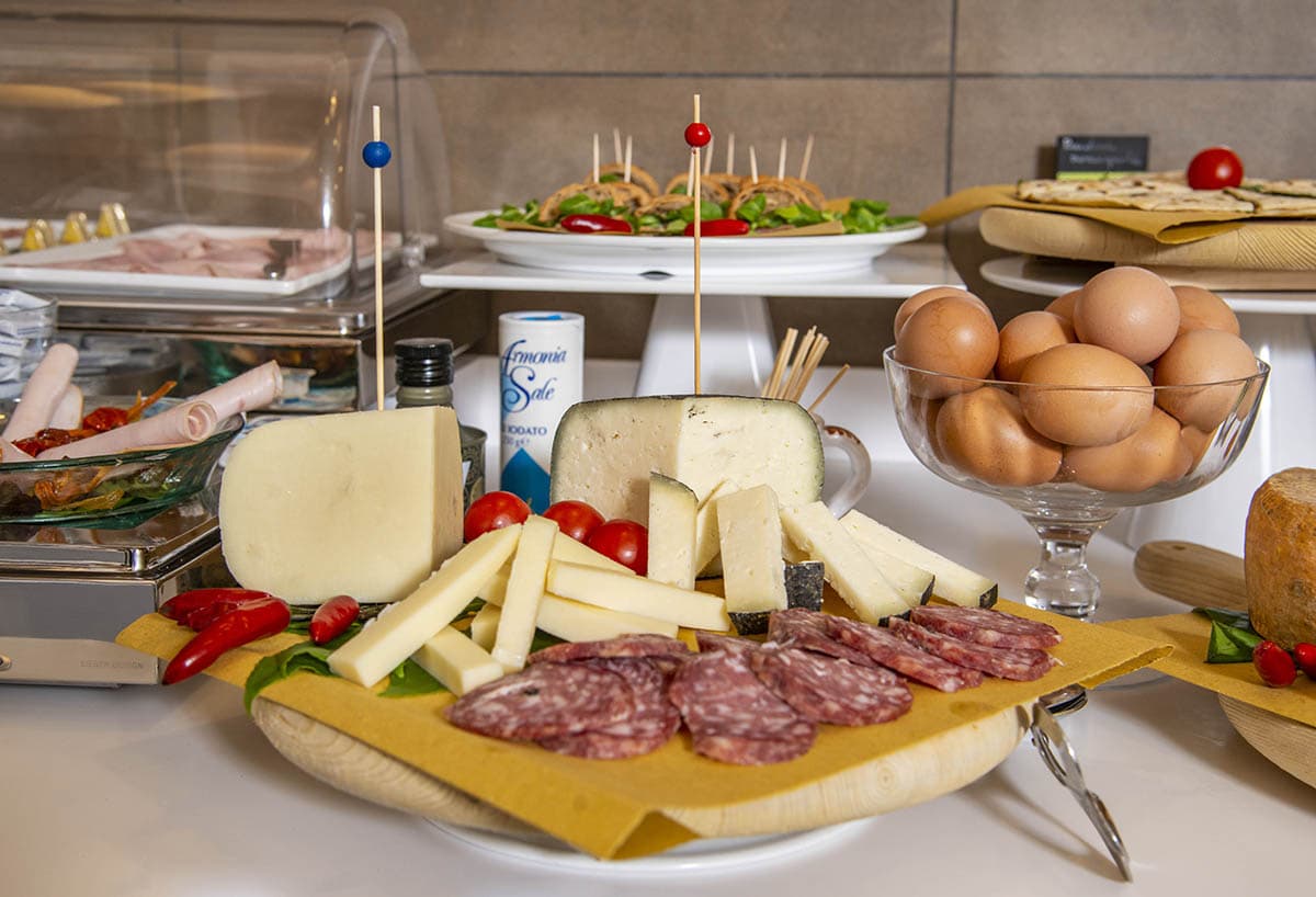 È prendersela comoda fin dal mattino, facendo colazione quando se ne ha voglia e non secondo i ritmi di un’agenda fitta di impegni. Dalle 7 alle 11 prenditi tutta la calma del mondo; e anche se arrivi all’ultimo minuto, trovi ugualmente ciò che ti aspetti come yogurt, salumi, uova strapazzate, ma anche i formaggi locali, le centrifughe, la ciambella romagnola (quella con la granella di zucchero sopra) e la piadina, da assaggiare con le nostre marmellate e, sì, anche con la nutella.