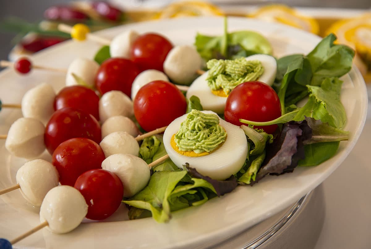 Insalata mista, pomodorini, carote e zucchine julienne, mozzarelline, scaglie di grana, lamelle di mandorle e olio Evo - SCIROCCO